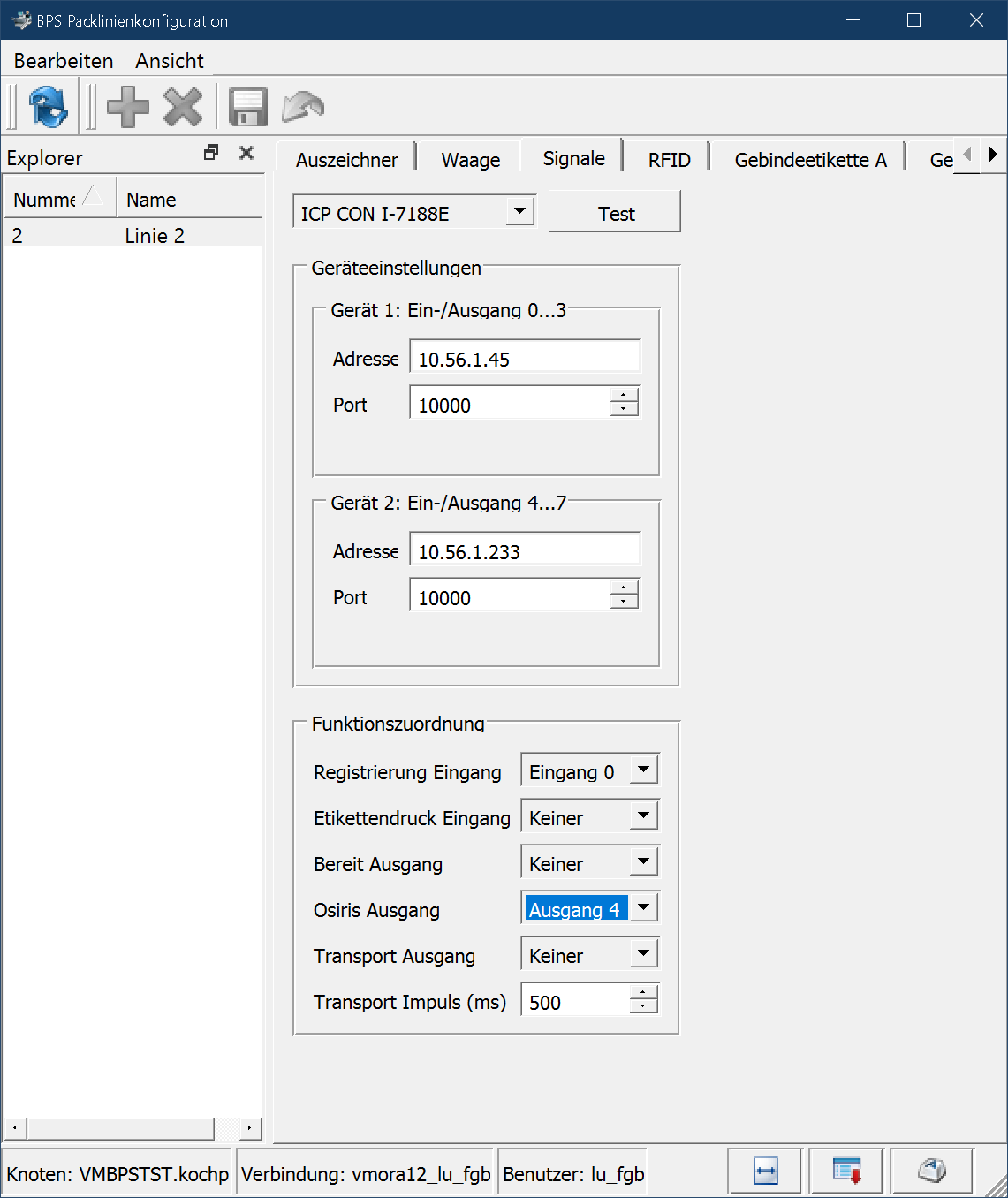| Beschreibung | Bei der Osiris-Abpackung wird ab dieser Version nicht mehr das Signal «Transport Ausgang» verwendet welches als Puls pro Gebinde geschickt wird, sondern das neue Signal «Osiris Ausgang». Das Signal wird gesetzt sobald ein Packauftrag mit Zielzone Osiris aufgerufen wird. Es wird gelöscht wenn ein Auftrag für eine nicht-Osiris Zielzone (MIFA, Lager) aufgerufen wird: Das Signal «Transport Ausgang» wurde wieder auf die ursprünglichen Funktion zurückgestellt, d.h. es macht nach Registrierung eines Gebindes einen Puls, und zwar wieder unabkängig von der Zielzone. | ||||