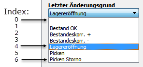 | Beschreibung | Wenn viele Bestände mutiert werden müssen, ist es umständlich dass bei Änderung einer Menge der letzte Änderungsgrund jeweils automatisch gelöscht wird und neu gewählt werden muss. Mit einer neuen Einstellung kann ein anderer Index in der Liste der Änderungsgründe als Defaultwert eingestellt werden: