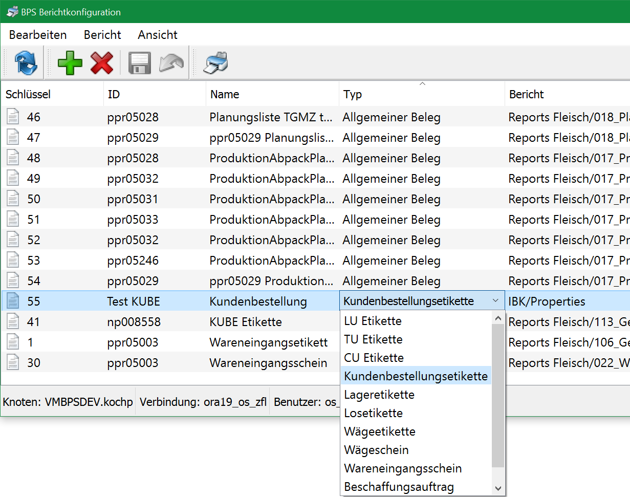- In der Berichtkonfiguration wurde für die KUBE Etiketten der neue Type «Kundenbestellungsetikette» hinzugefügt. Bestehende Einträge in der Berichtkonfiguration müssen entsprechend angepasst werden.
